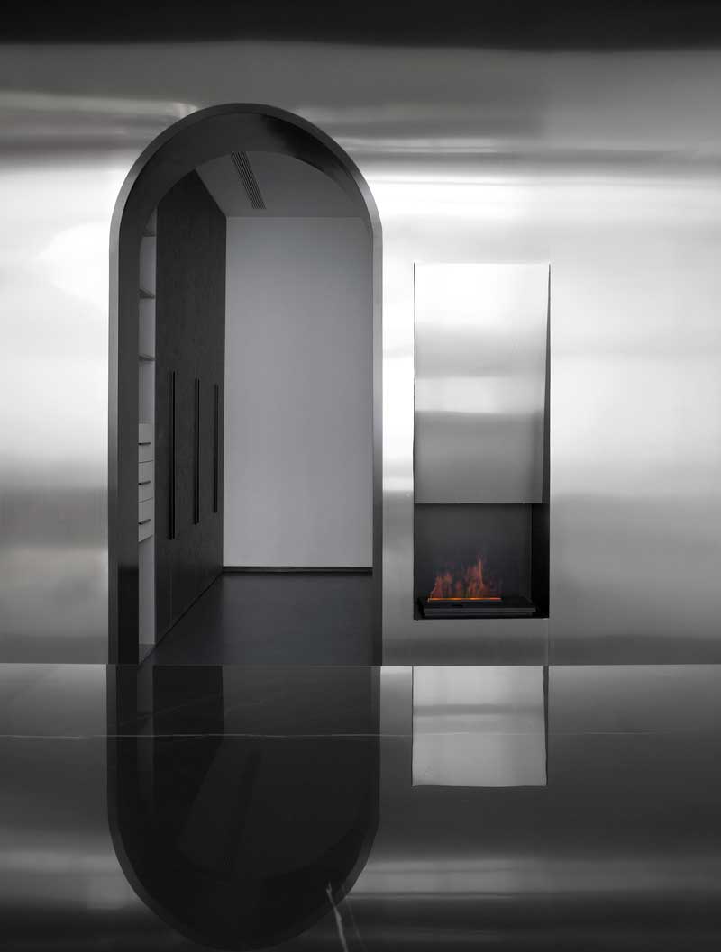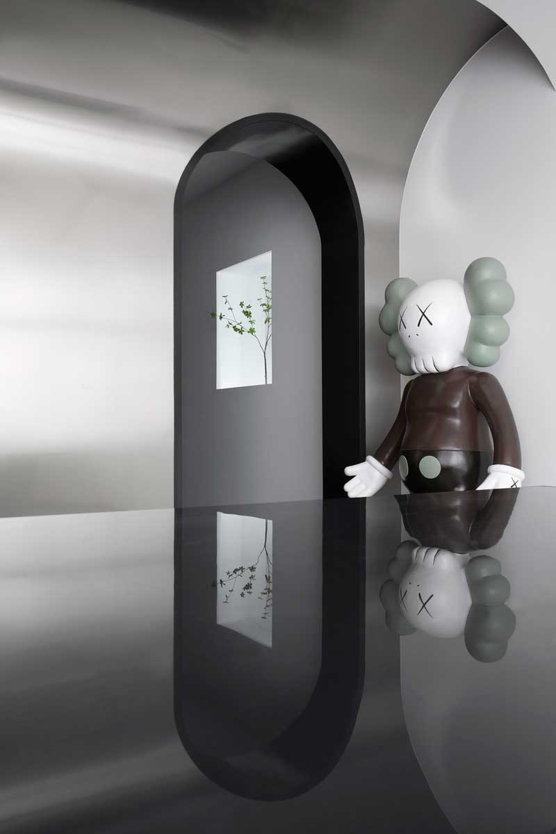 綠植造型墻在黑色反光度極高的材質(zhì)反射,和光線的照射下,把黑色的神秘深邃,優(yōu)雅冷酷的特質(zhì)完美的表現(xiàn)出來,綠色植物的清新養(yǎng)眼,讓整體看上去自然而舒適,美觀而大方。