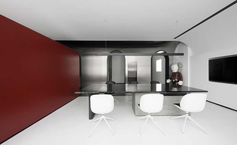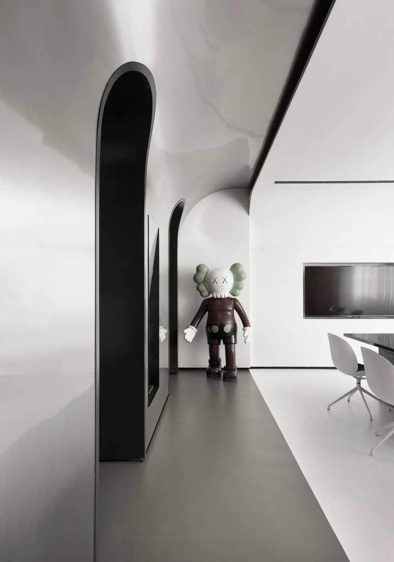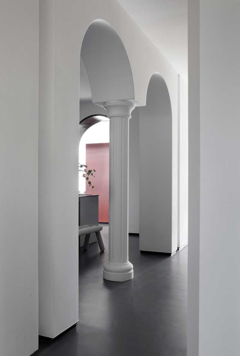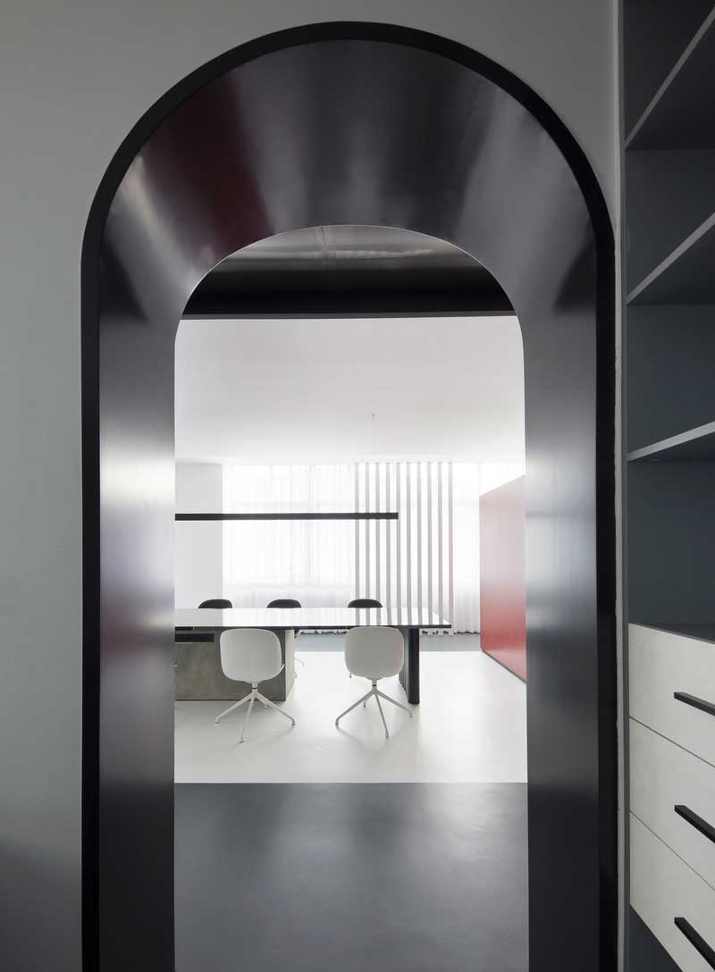 白色的拱形門和羅馬柱的元素,使得辦公室既能體現(xiàn)極簡(jiǎn)風(fēng)的簡(jiǎn)潔干練,同時(shí)也具備歐式的優(yōu)雅,兩種相結(jié)合,簡(jiǎn)單素雅中不失,新穎的設(shè)計(jì)感和豐富的想象力。