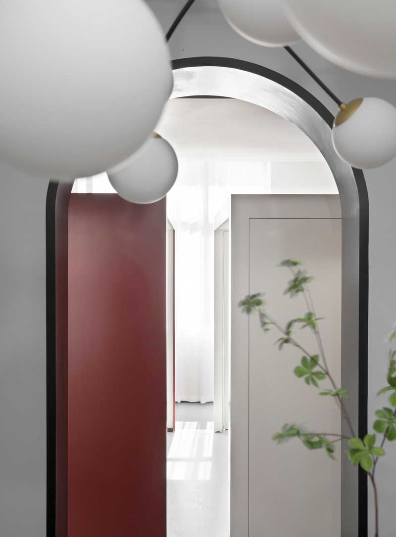 白色的墻面和強(qiáng)烈,給人的感覺整體通透而開闊,光線亮度高,空間給人的整體感覺,非常優(yōu)雅而具有高級(jí)感,灰色的地面和紅色裝飾,讓整個(gè)充滿了一種簡(jiǎn)單的高級(jí)氛圍。
